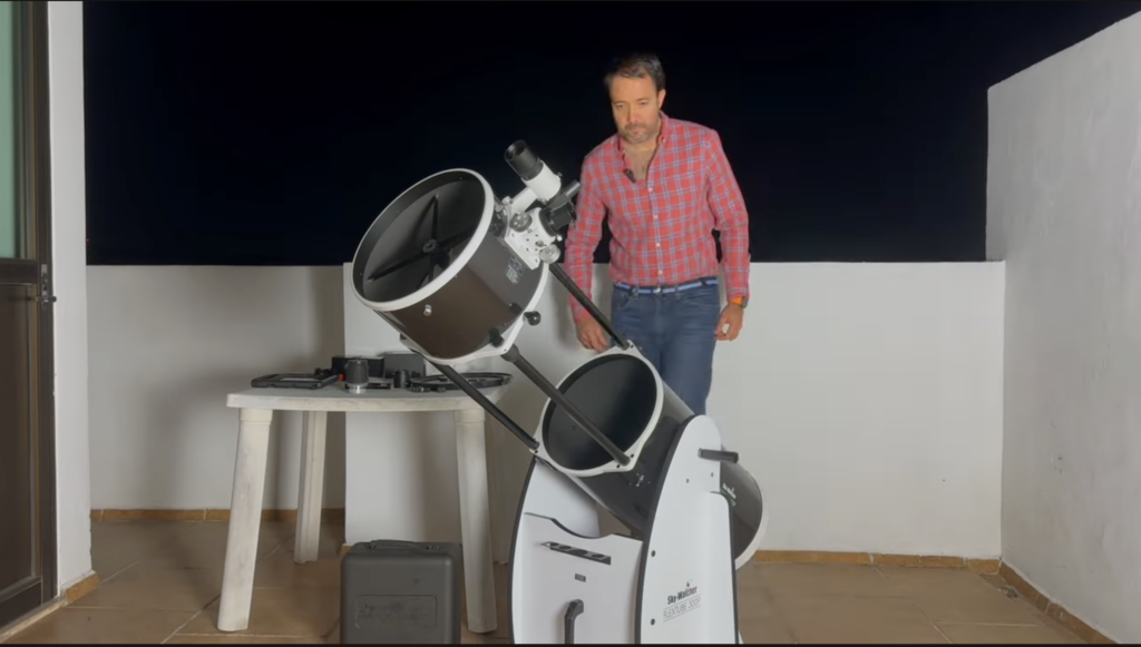 Setting it up is almost a ritual. Its main components are the 17-kilogram Dobsonian base, the 21-kilogram optical tube, the eyepieces, the 9×50 optical finder and the laser collimator for aligning the mirrors. With practice, setup takes about 15 to 20 minutes. Without practice, about 40.